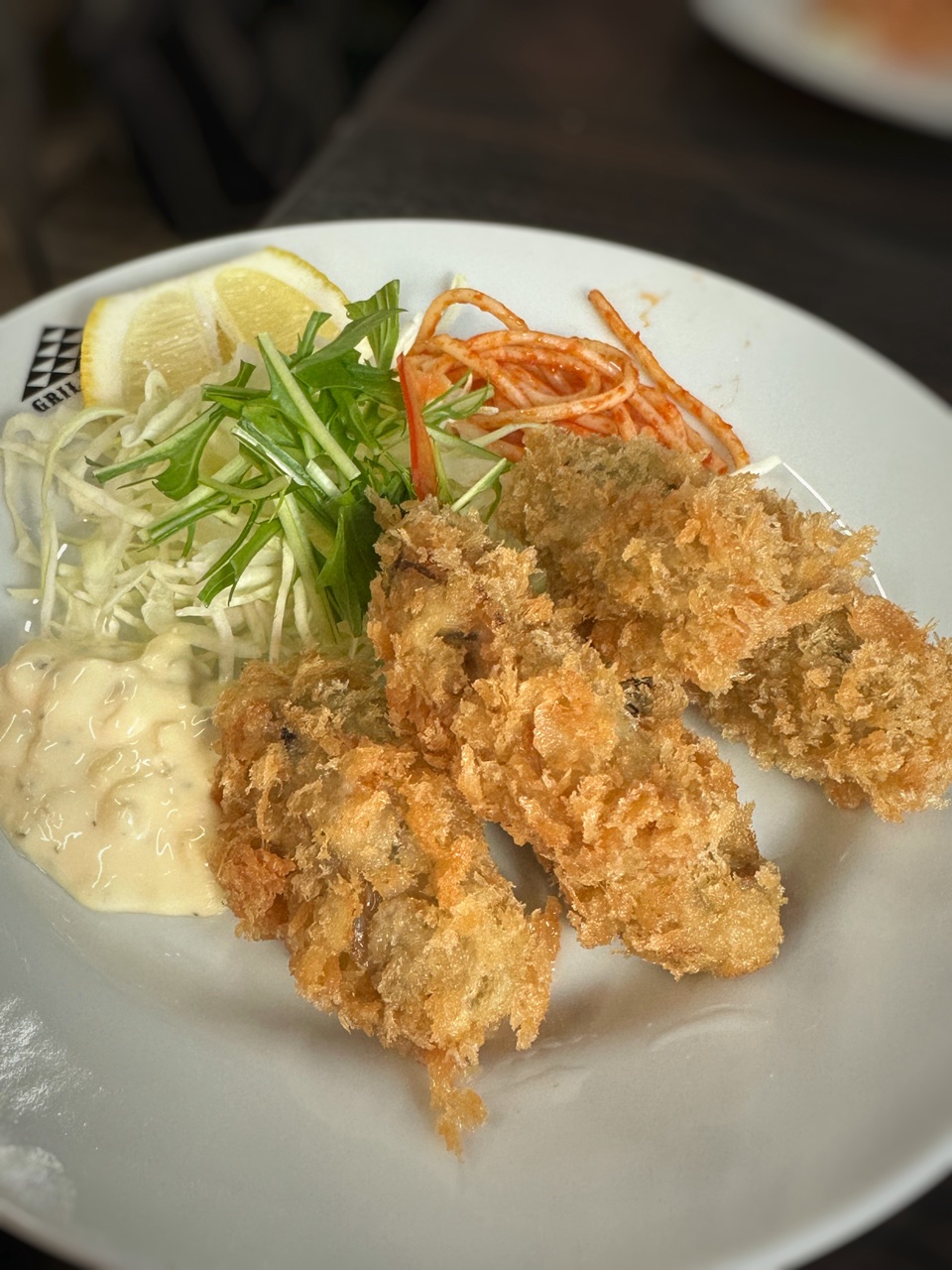 年末の買い出しに築地場外に出かけた土曜日もちろん買い物がメインっちゃあメインですが年に1度は伺いたいお店がありまして…毎年年の瀬恒例行事のようになっている東都グリルさんのカキフライとカニクリ☺️伺うのは店舗の方ではなく場外にある築地魚河岸のある建物の3Fカキフライで有名な?小田保さんや鶏そばの鳥藤さん、お蕎麦屋さんやマグロ屋さんが集結していますが、目指すは洋食の老舗東都グリルさんです席を確保してカウンターに向かいます値上がりラッシュではありますがそんなに値上がりしている感じではなさそうカキフライ(1250円くらい?)とカニクリームコロッケ(1100円くらいだったか…)どちらも単品でお願いしますピーピー君を受け取りセルフのお水をセットしあとは待つだけ… 10分くらいかかったかしら?ピーピーの音で撮りに伺うと …もうおいしそうカキフライは5個、サクッと軽い揚がり具合牡蠣は見た目ほど小さくはなく一口で食べられないくらいずっしりした重量溢れんばかりの牡蠣のジュースがフルフルとした牡蠣から滴り落ちるほど…マヨネーズ感のあるタルタルソースレモンだけでも十分にその地味深いお味を堪能カニクリームコロッケはころんと丸いフォルムここのベシャメルソースがとにかく好き硬めに仕上げてあるミルキーなソースにはコレでもかぁ〜 ってくらいズワイガニの身がツンツンと姿を見せています熱々のクリームコロッケを少しずつ齧る楽しみ蟹の香りと味わいを存分に楽しんじゃいますおいしそうに食べていたんでしょうか ねお隣のアメリカ人と思しき家族からそれは何だ、それ食べたい、どこで買えるのか…ともちろん東都グリルさんのカウンターにご案内カキフライ、カニクリ、オムライスをお願いしていましたアメリカ人のファンも作っちゃったかしらね年に1度と言わずもっと伺いたいと思いつつ気がついたら1年経ってしまっている近年…とりあえず1度でも行けてよかったわ〜Instagram はこちら(^^♪東都グリル 築地魚河岸店 MAP東京都中央区築地6-26-1 築地魚河岸 小田原橋棟 3F☆★ブログランキングに参加しています★☆一日一回ポチッと応援クリックよろしくお願いしますにほんブログ村こちらもよろしくねメッセージはこちらからお願いします