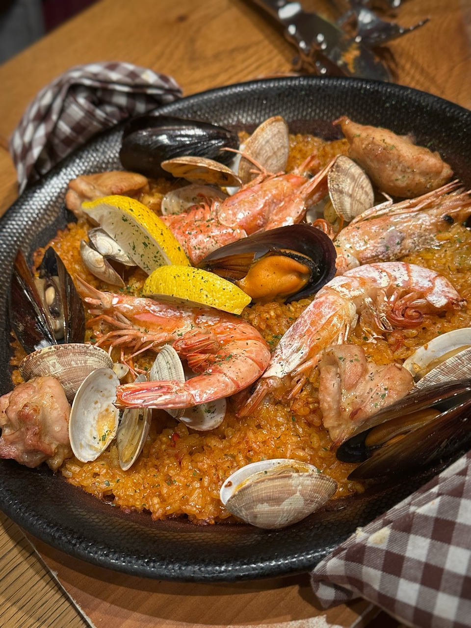 友人4人で新年会3時間フリーフロー付きのお得なコースを見つけたので迷わず即決 …飲むペース考えなくて良いもんねちょっと早めにフライングスタート Para Comenzarとしておつまみ3種盛り スパニッシュの定番生ハムの1種、コッパスペインのチーズは牛さん …名前忘れたそれとオリーブマリネ …もうこれだけで飲める Pinchosとして冷製2種 いぶりがっこをトッピングしたポテトサラダベースになっているバゲットが硬いのでこれは手でガブリが正解 …いぶりがっこ美味もう1種はカボチャが見えてる〜 と言うことでパス致しましたが甘くて重いフォカッチャのようだった とかAjilloはエビとマッシュルーム!! ぷりっぷりのエビは熱々 …文句なしに んまっこういうテッパンメニュって驚きはなくてもやはりおいしいそしてワインがどんどんと空いていく状態Carneは鶏もも肉のアフリカンチキン ジューシーな鶏もも肉にお肉が見えないほどの真っ赤なピリ辛ソースがたっぷりそこまで辛くはないけれど鶏の脂に濃厚なトマトベースのソースは大変相性良く口いっぱいに広がる旨みにニンマリ この日のPaellaは魚介と鶏肉のミックスパエリア お肉とシーフードのダブルのパエリアはスープの旨みが米にシミシミパエリアは日本が1番!って思っていた過去最近バルセロナで食べたパエリアはリゾット風だったけれど、とてもおいしくやっぱりスペインのパエリアもおいしっ!って思っていたところだったのよねさてさてこちらは …いわゆる有名店ではないとは思うのだけれど、パエリア鍋にカリカリっと香ばしい焦げがあるパエリアやっぱり日本に軍配あげちゃうかなぁデザートはガトーショコラ さすがにもうお腹に余裕もなく生クリーム苦手なのでこちらもパスそれにしてもこの充実したコースとてもお得でおひとり様5500円以下だったのよ一○.com様ありがとう〜Instagram はこちら(^^♪リザラン 新橋店 MAP東京都港区新橋2-11-10 HULIC&NewSHINBASHI 1F☆★ブログランキングに参加しています★☆一日一回ポチッと応援クリックよろしくお願いしますにほんブログ村こちらもよろしくねメッセージはこちらからお願いします