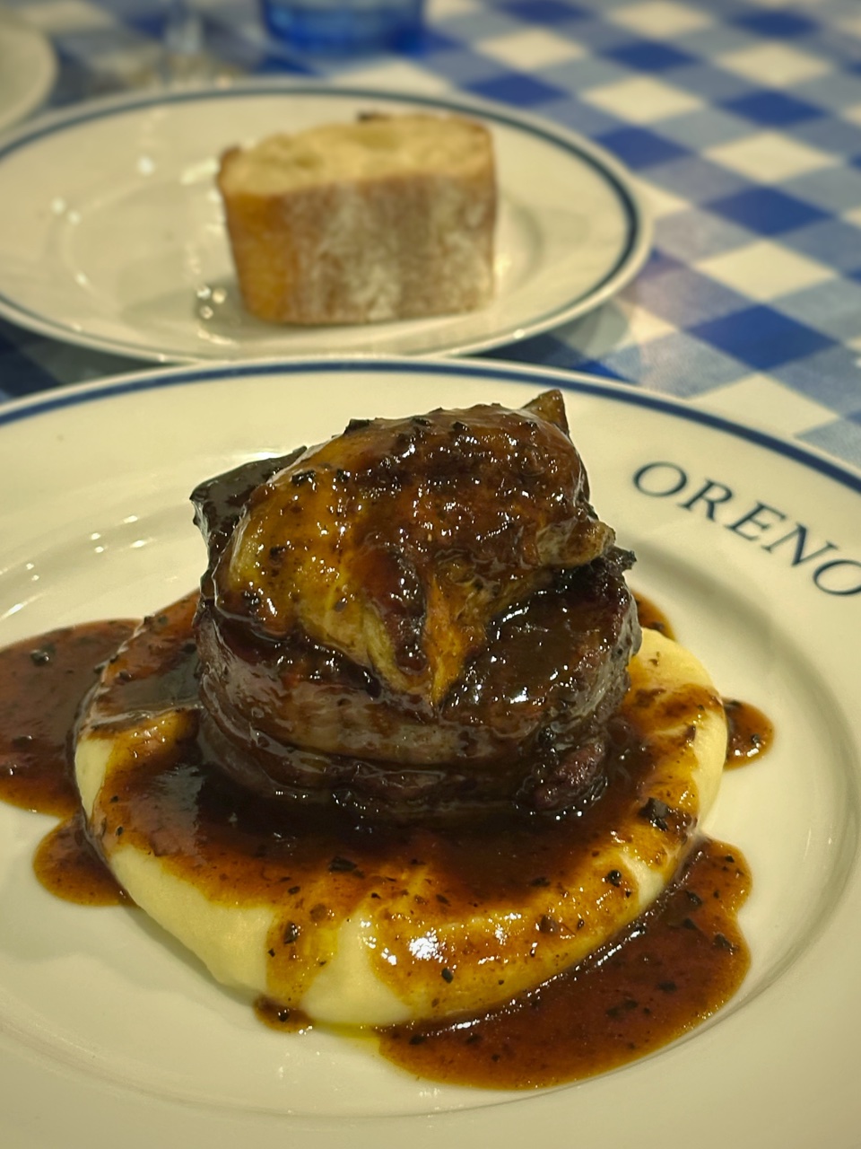 もう随分と前になってしまった年末、大晦日この数年は神楽坂の俺のフレンチで早めのディナーを楽しみ浅草をうろうろ浅草寺も年末ならまだ伺えますから…ポイントで溜まった俺のシャンパンで乾杯プレミアムシャンパンの方を出していただけるのもうれしいいなぁ って毎回感謝本日の白身魚のカルパッチョはマツカワカレイ彩よく盛り付けられ ←ココ大切よねイクラも散らされておりますシトラス系の酸味はさわやかで柿の甘みが少しばかりアクセントカレイはおもいのほか厚めのカットしっとりとしたコリコリの白身シャンパンが消えてしまうわ温かいものがいただきたくて渡蟹のトマトクリームリゾット渡蟹の旨みがたっぷりとフォンとリゾット米にしみだし、まるでカニそのものをいただいているかのような錯覚クリームはさほど感じず、それ故重くなくトマトの甘みと酸味と渡蟹の旨みが際立った一品です …濃厚この日は久しぶりにロッシーニと決めていて…牛フィレとフォアグラの「スタンダードロッシーニ」やわらかな牛ロースの上に鎮座するフォアグラ…写真の色がちと不気味ですみませんトリュフ香るソースとミルキーなマッシュドポテトいついただいてもこれは絶品赤ワインをいただきたかったけれどここはシャンパン1本で締めることに年末の街に繰り出したのでしたInstagram はこちら(^^♪俺のフレンチ 神楽坂 MAP東京都新宿区納戸町12 第5長森ビル1F☆★ブログランキングに参加しています★☆一日一回ポチッと応援クリックよろしくお願いしますにほんブログ村こちらもよろしくねメッセージはこちらからお願いします