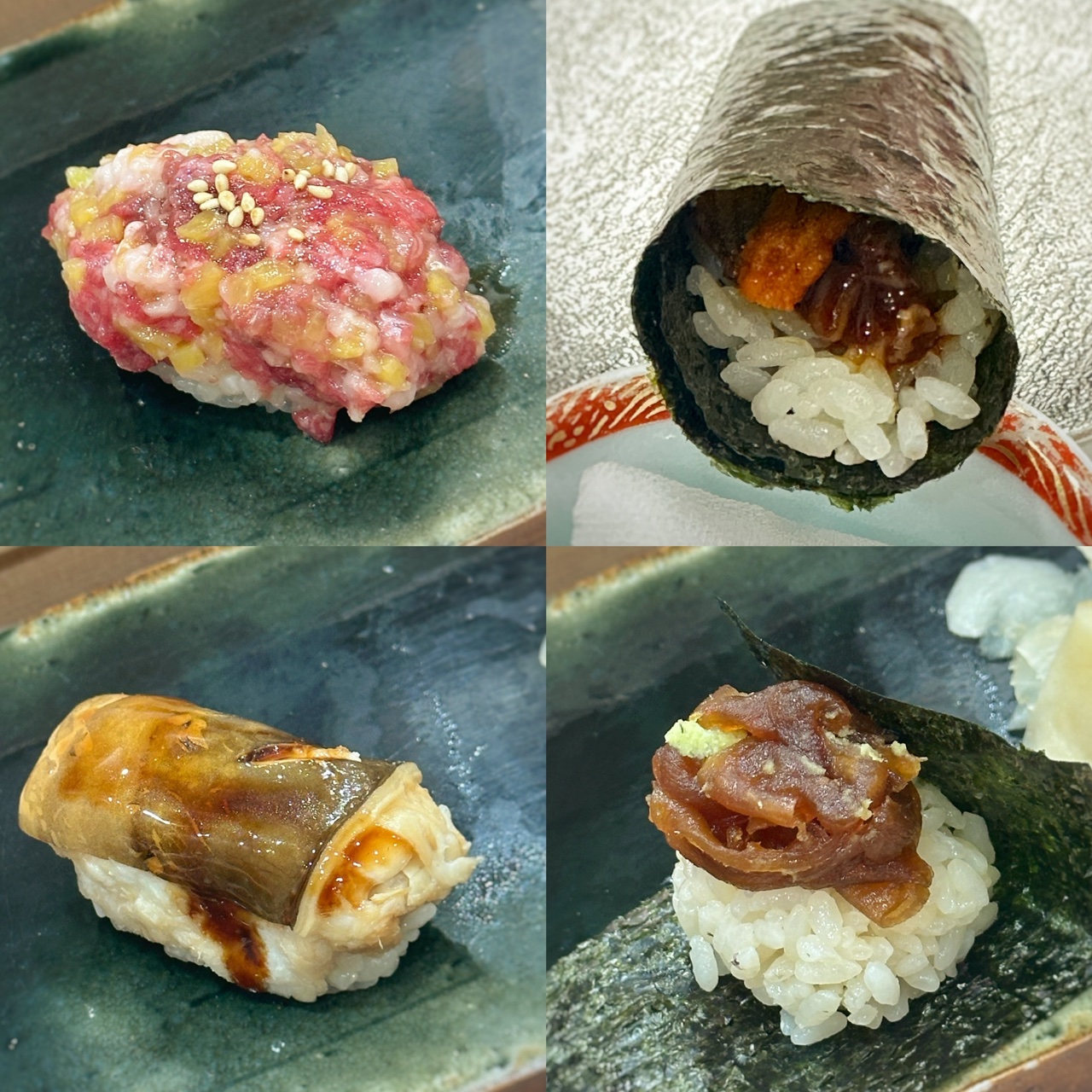 手巻きで渡されたのは鯨の尾の身とウニ