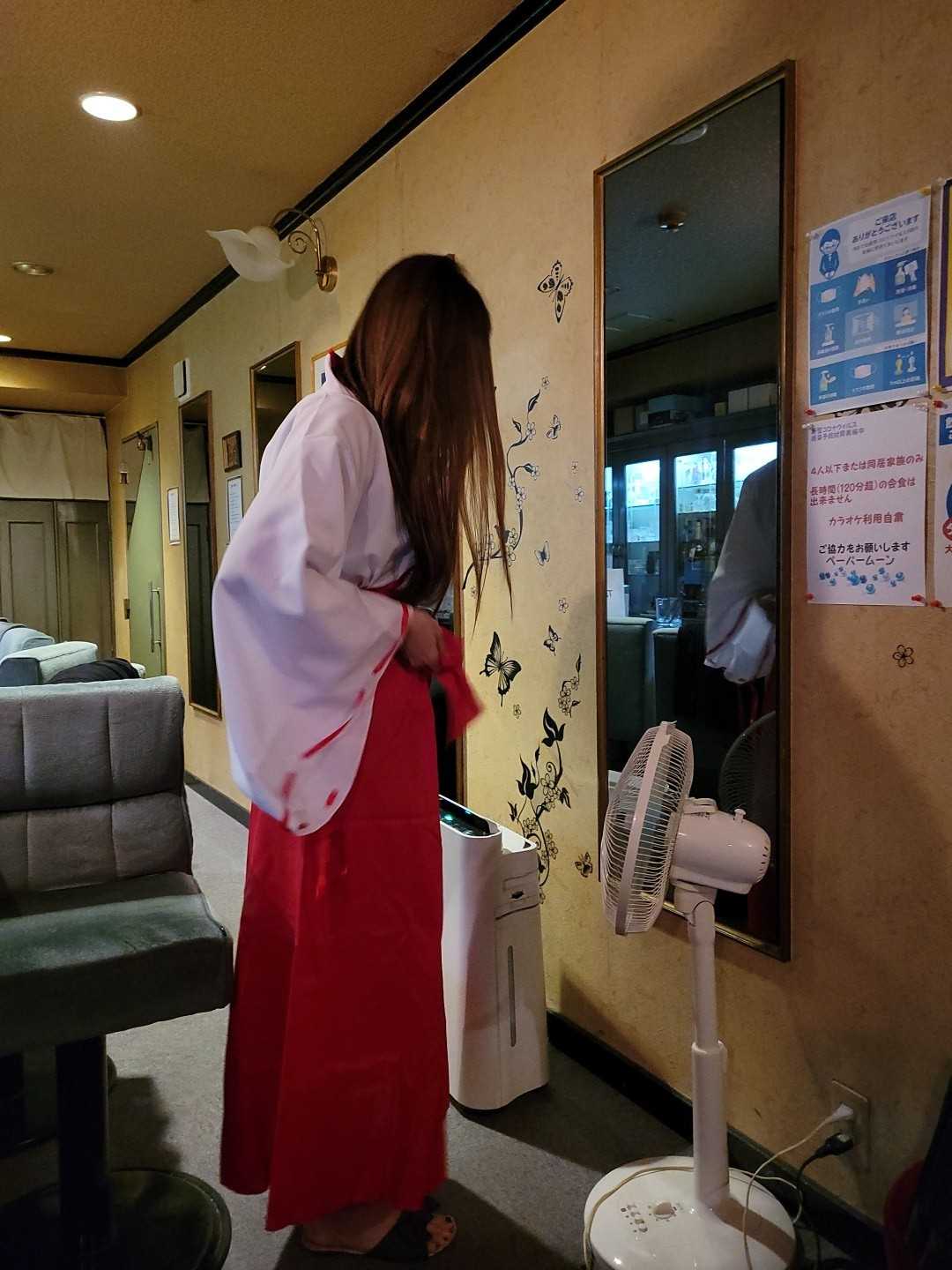 あーにゃんが巫女さんになってた。 これ着てビール飲むのかな。