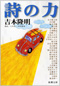 『詩の力(吉本隆明)』です。引用・・・、岡井隆の『E/T』より夕餉(ゆふがれひ)をはりたるのち自(し)が部屋にこもりたれども夜更けて逢ひぬ帰りしとき紅潮させてゐた妻に気づかぬふりをしたりせんだりp41 塚本さん、岡井さんほど本格的な仕事をしたといえるのは、詩では荻原朔太郎や宮沢賢治、中原中也、短歌では斎藤茂吉といった名前を挙げられるにすぎない。p37塚本さん=塚本邦雄 岡井さん=岡井隆 ある音声学者が、日本人はメロディー自体を、(音声言語をつかさどる)言語能で聴いたり、(感覚機能をつかさどる)感覚能で聴いたりするために、こういうことが起こるのだといっている。平安期の物語を読めば、日本人が風の音や虫の声を聴いているうちに涙を流す場面がよくある。それは現代にも続いている。風の音や虫の声を言語として聴いてしまい、意味を感じてしまうためだ。p71現代詩についてちょっとは分かった気にさせてくれる。引用されている、詩や短歌を読むにつれ、文芸の厳しさが分かったような気になる。今日(2/4)中日新聞の夕刊に角川短歌賞・俳句賞の発表が出ている。その短歌は・・・、柚子風呂の四辺をさやかにいろどりて湯は溢るれど柚子はあふれずあかねさすGoogle Earthに一切の夜なき世界を巡りて飽かずその俳句は・・・、思ひ切り吹いて草笛かすかな音裸の子「うん」といふなり走りだす短歌も俳句もどちらも緩い。これで賞だってさ。詩の力吉本隆明構成/大井浩一・重里徹也新潮文庫平成21年1月1日発行