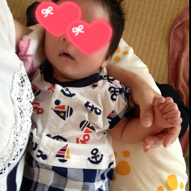 今日は地区の健康相談に行き、身長と体重を計ってもらいました。 身長*51cm(出生時)→61cm 体重*3,064g(出生時)→6,000g まで成長しました! …………デカイ、デカイよっΣ(-∀-ノ)ノ 長男の六ヶ月くらい、次男の四ヶ月あたりに匹敵する大きさ(゚Д゚;) そりゃ二ヶ月には見えません(; ̄Д ̄) そんな三男。 初めての場所で疲れたのか帰宅して布団にゴローンとさせたら、最初はキョロキョロしてたけど、だんだん目が虚ろになって勝手に寝ちゃいました(ノ≧∀)ノわぁ〜い♪ たまにはこんな日もないとねー(≧ω≦。)プププ 明日は予防接種デビューでっす(* ̄∀ ̄)