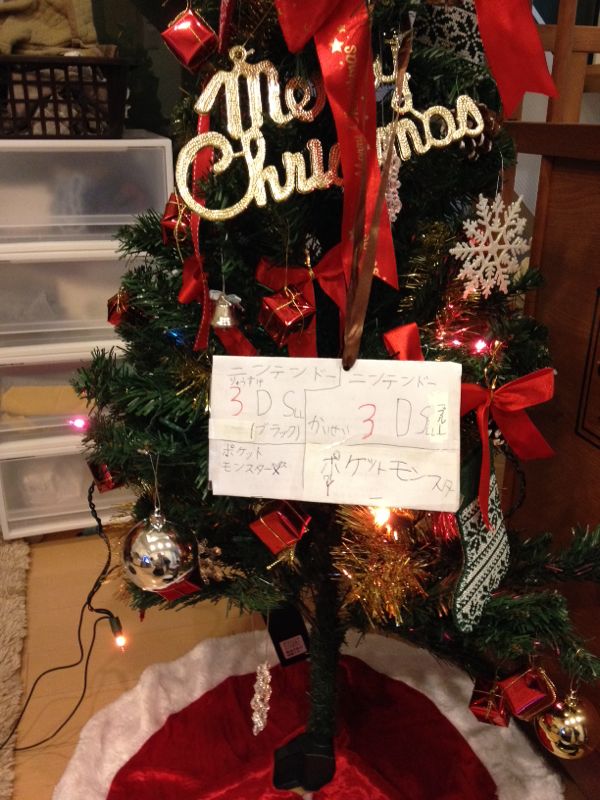 今年もなんとか(笑)サンタからプレゼントが届きました☆ 長男次男には3DSソフトのポケットモンスターXとY。 三男には歯がためでした( ´艸`) 3DS本体はサンタからではなく、私達からのプレゼントにさせてもらい、本体の持ち主は旦那ということにしました。 なので使いたい時は旦那から借りるシステム。 すこーし、次男は不服そうでしたが(笑) 今のところキチンとルールを守って楽しく遊んでます♪