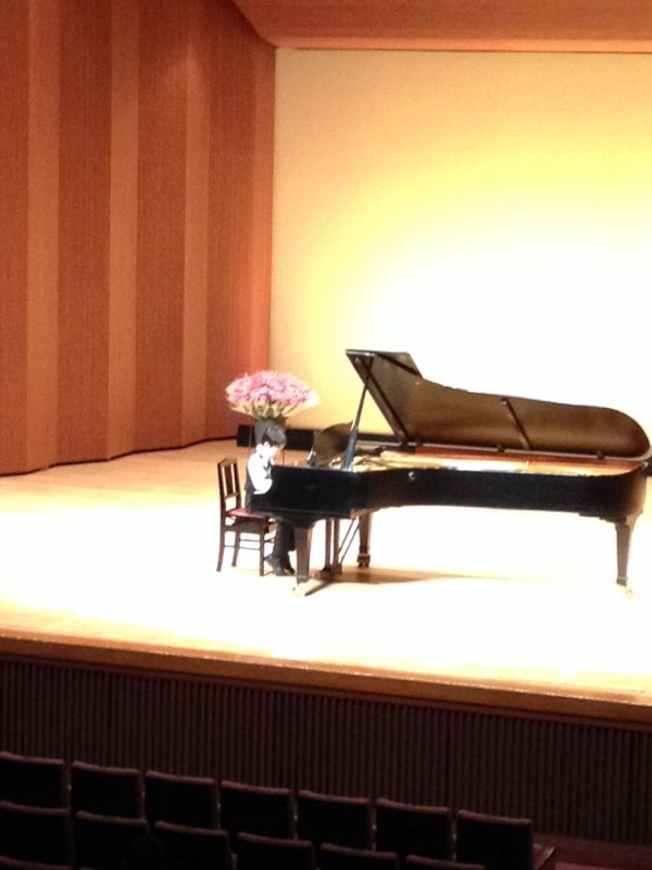 昨日は長男のピアノの発表会がありました。 約一年半ぶり、二回目の発表会。 課題曲は「楽しい農夫」 前回で雰囲気を味わってたためか、緊張気味の長男。 序盤で若干詰まってしまい、誤魔化すこともできず悔しそうでした。 でも全体的にはとても良かったので褒めちぎりました。 今回はコンサート形式も加わり、長男は三人で「草競馬」を連弾。 こちらは殆どミスなく弾き終えました。 10:30から始まり19時までかかった発表会。 終盤にプレゼント交換もあって、それを楽しみに頑張ってた次男。 危なっかしい遊び方したりしてヒヤヒヤすることもあったけど、比較的いい子に過ごしてました。 やっぱり二年生が近づくと違うねー。 三男は特に愚図ることもなく、いい子にしてました。 ほんまえらい。 ただ、その分、夜は興奮気味なのかあまり寝ず、明け方乳を吸っては泣いてを二時間繰り返し3時にぱっちりお目覚め。 なんとかようやく4時にねんね。 ………母、グッタリ。 あ、ちなみに私と三男は連弾が終わって一足先に帰宅しました。 そういう風にさせてくれた旦那に感謝☆ 次の発表会は一年半後。 長男四年生、次男三年生。 三男二歳前………。 次回のほうが大変かもΣ(-∀-ノ)ノ