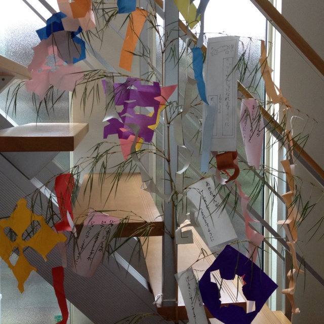 昨日、次男が学校から笹を持ち帰りました。 うまく飾り付けしてあったので、願い事を追加して飾り付けしました♪ 叶うといいね♪