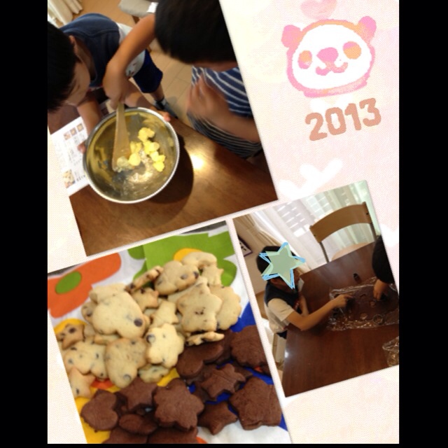 先日、長男の宿題で「形」という漢字があって。 その例文に「クッキーの形を作る」みたいなのがあり。 それを見た次男が「日曜日、クッキー作ろ♪」と言い出し。 日曜日が近付く度に「日曜日楽しみじゃね♪」と言われ(^◇^;) 切迫で張り止め飲んでるからキツイな………とも言えず、作りました( ̄▽ ̄) バターを練る所で悪戦苦闘してましたが、材料を計る所から何回かに分けて混ぜたりとか最後の型抜きとか楽しんで作ることが出来ました♪( ´▽`) 長男はクッキー作りのことをあのね帳(週末の日記みたいな宿題)に書いてました。 最後の洗い物とかまで出来たら優秀なんだけどなぁ(笑)