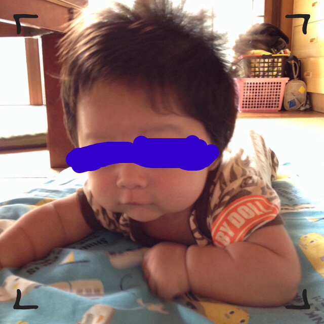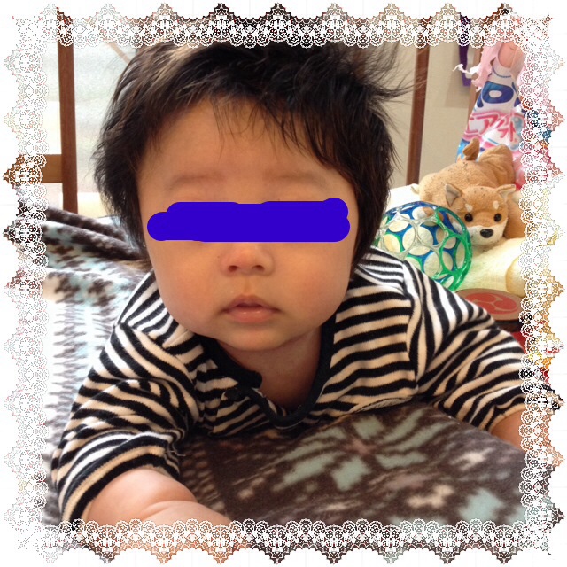 三男、四ヶ月半とちょっと。 ズリバイ開始しましたΣ(-∀-ノ)ノ 早くない? 自分が垂らしたヨダレを自分の服で拭きながら移動しとりますΣd(゚∀゚d) まるで三男はルンバのようです。