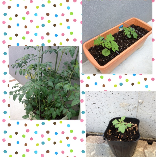ミニトマトはG.W開けに植えたのでかなり大きくなりました。 右下のもミニトマトなんだけど、長男のチャレンジの付録に付いてた種から植えました。 まぁまぁ大きくなりつつあります。 ゴーヤは種から頑張ったものの、全く芽が出なかったので苗を買って来ましたσ(^_^;) 今年はあばしと白ゴーヤにしてみました☆ 白ゴーヤ、楽しみー☆*:.。. o(≧▽≦)o .。.:*☆