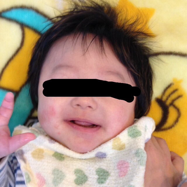 三男、四ヶ月になりました♪ 三ヶ月と少しで首が坐り、四ヶ月目前にして寝返りが出来る様になりました(*≧艸≦) 三兄弟の中で一番早いです☆ 最近は自分の足の存在に気付いたらしく、よく足を握って遊んでます。 夜は相変わらず添い乳で朝まで寝ることはないですが、四時間くらいまとめて寝ることもあります。 一時間おきって時もありますが(; ̄Д ̄) 抱っこしてご飯食べてたら茶碗を取られそうになってきたので油断できません。 おもちゃにも手を伸ばすようになりました。 髪の毛が伸びてきて、よく「女の子ですか?」と聞かれます(* ̄∀ ̄) ズリバイとか離乳食とか随分先の事だと思ってたけど、こりゃあっという間だなー(゚Д゚;)