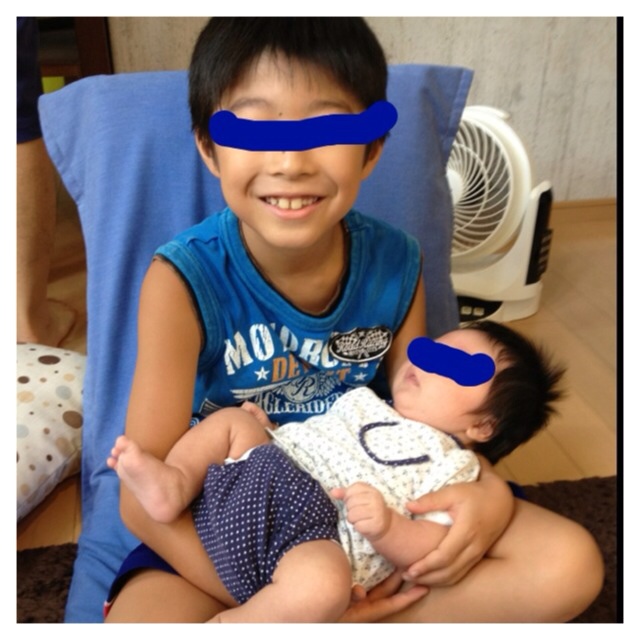 満面の笑みで三男を抱っこする長男@二年生 微笑ましい꒰ ♡´∀`♡ ꒱