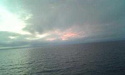 もちろん、早起きして見たわけではありません^^朝は苦手ですから。フェリーに乗ったのが深夜12時過ぎなので、それから宴をしたり、DVDを見たり。小樽からは車で帰るため、日中アルコールは飲めないので、眠くなるまで起きていようという魂胆です。で、朝の5時に外を見ると朝焼けが。海の上で見る朝焼けもとてもきれいです。