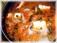 美唄焼き鳥のレトルトが時々実家から届くので、昨日宴で食べたのですが、余ってしまいました。投げちゃうのはもったいないので、余った焼き鳥のモツたちを煮込みました^^何味にしようかな~と思いつつ、豆腐やニラがあったので、チゲ風に。レシピは適当です。入れたのは、 ・余った焼き鳥のモツ ・豆腐 ・ニラ ・キャベツ ・長ネギ ・ニンニク味は、 ・味噌 ・激辛味噌(旭川味の三平の味噌) ・コチュジャン ・胡麻油 ・白ごまもちろん、辛かったです。三平さんのお味噌は最高です。夏の終わりはまだまだ認めたくはありませんが、なにぶん北海道なので、夜はすでに涼しすぎる風が入ってきます。なので、鍋が合います。