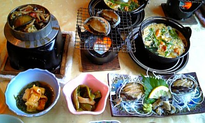 夕食には、これでもか!ってくらいアワビが出てきました。