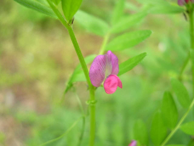 ★カラスノエンドウ 自宅近くでカラスノエンドウが咲いています。カラスノエンドウはマメ科の植物で北海道、本州、四国、九州に分布します。野原に生えるツル性の植物です。花は長さ12~18mmで紅紫色です。開花時期は3~6月です。和名は烏野豌豆(からすのえんどう)で、カラスの名前はスズメノエンドウなどと比較した大きさを表すことばです。完全に熟すとさやや種が黒いので、カラスノエンドウであると言う説もあります。
