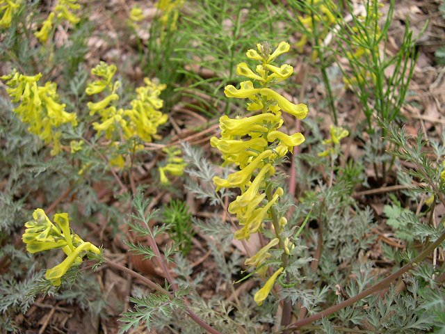 ★ミヤマキケマン 上塩原地区でミヤマキケマンが咲いていました。ミヤマキケマンはケシ科の植物で本州(近畿地方以北)に分布します。日当たりのよい山地の伐採跡、林のふちなどに生える越年草で、茎は高さ20~50cmになります。花は長さ約2cmで淡黄色です。開花時期は4~7月です。和名は深山黄華鬘(みやまきけまん)です。華鬘は仏殿の欄間(らんま)などの装飾具のことです。花に触れたり、傷つけたりすると悪臭が皮膚に付着して容易に落ちないので注意が必要です。