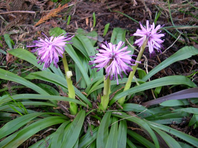 ★ショウジョウバカマ 遅野沢地区でショウジョウバカマが咲いていました。ショウジョウバカマはユリ科の植物で北海道、本州、四国、九州に分布します。山野のやや湿ったところにはえる多年草で、花茎は高さ10~20cmで、花が終わると30~40cmまで伸びます。花は淡紅色から濃紅色まで変化が多く、白色のものもあります。開花時期は4~6月です。和名は猩猩袴(しょうじょうばかま)で、花の色を猩猩(中国の伝説上の動物)に、下部の根生葉を袴(はかま)に見立てたものです。