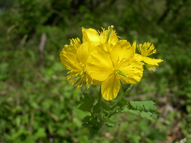 ★クサノオウ 自宅近くでクサノオウが咲いていました。クサノオウはケシ科の植物で北海道、本州、四国、九州に分布します。平地の道ばた、草地などに生える越年草で、茎は高さ30~80cmになります。花は径2cmくらいで黄色です。開花時期は5~7月です。和名は瘡の王(くさのおう)で丹毒(たんどく)を治す効があるので瘡(くさ)の王と呼ぶとの説があります。