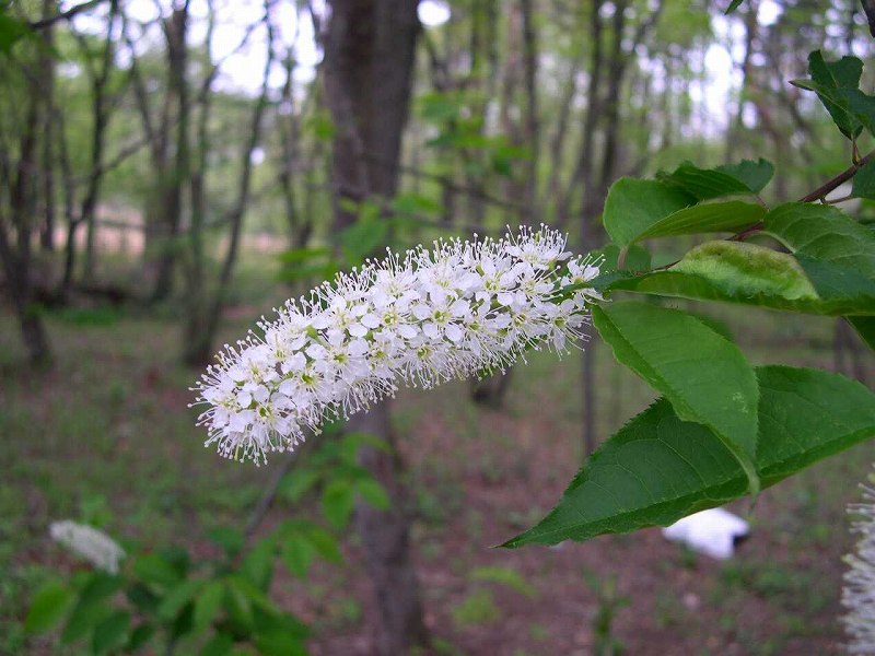 ★ウワミズザクラ 千本松地区でウワミズザクラが咲いていました。ウワミズザクラはバラ科の植物で北海道、本州、四国、九州に分布します。野に生える落葉高木で、高さ20mになります。花は長さ6~8cmの総状花序です。花弁は径3mmくらいで白色です。果実は長さ6~7mmの卵円形で先はとがり、黄赤色から黒く熟します。緑色の幼果を塩漬けにするほか、果実種などにもされます。開花期は4~5月です。和名は上溝桜(うわみずざくら)です。昔、亀の甲羅を焼きその形から吉凶をうらなう神事がありました。その占いで甲羅を焼くのに使われたのがこの木であったといわれます。ウワミズは「上溝」の意味で、甲羅のヒビを表しています。