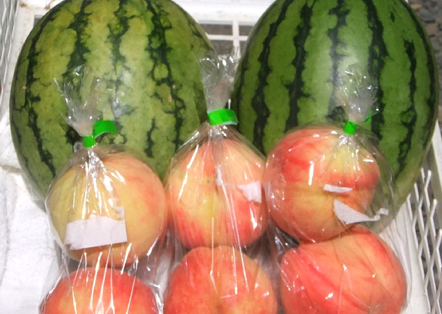 小玉スイカ 2個、 モモ 6個・・合わせて1050円でした。スイカは甘く、モモは2-3日置いてからいただきます。特にモモは、娘から「見つけたら必ず買ってきて!」と言われてます。ww