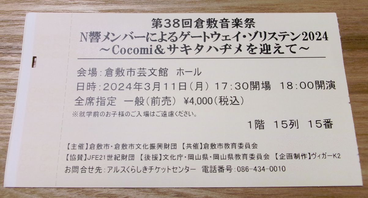 ここみちゅわ~ん♪5月1日5(こ)こみちゅ1(わん)の日お誕生日おめ!大切に取ってある去年の3月にここみちゃんのコンサートに行った時のチケット。木村と言えば木っしょ!つぎちゃんはキッショ!チケットの下に写っている木っぽいのは国道2号線沿いのニトリで買った木のおぼん(トレー)でごじゃーwニトリの隣りにマクドナルドがありますwそれでは今日の日記はここまで。つぎの日記でお会いするでごじゃる。にんにん♪