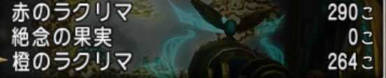 赤のラクリマ290個、橙(だいだい)のラクリマ264個ゲットだぜ!こんなにラクリマ集めてどーすんだw。日課でせっせと集めておりまするw。