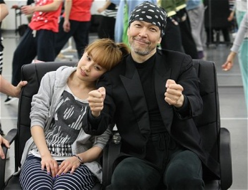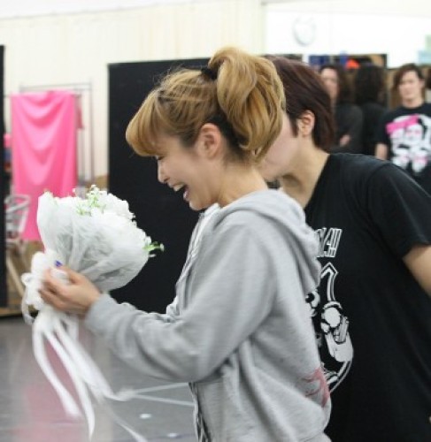 ジュリアの同僚にして従姉のホリー役・彩吹真央さんとのツーショット。ジュリアはホリーから「今日のデートできっとグレンがあなたにプロポーズしてくれるわよ!」と言われるシーンの稽古です・・・。