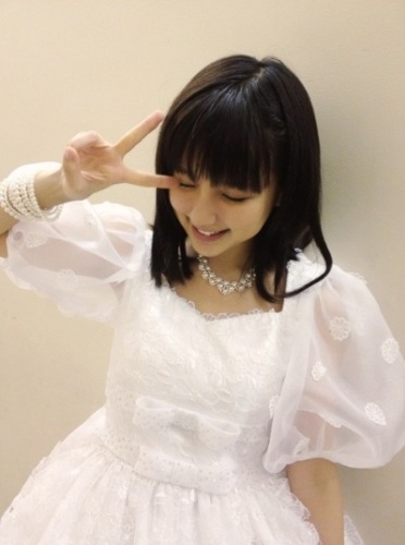 最新ソロ写真集『中さん』の発売記念イベントでのひとコマ。無事に終了して笑顔のVサインかな・・・?