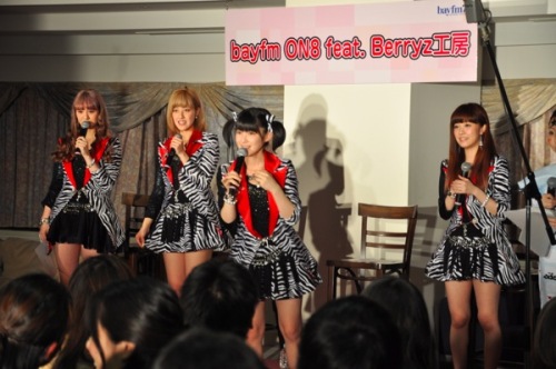 2/21に放送されたbayfm『ON8』の公開生放送『bayfmON8 Hello! ProjectSpecial feat.Berryz工房』に出演したももち、miya、りーちゃん、佐紀ちゃん。今回用意されたのはテーマは『Berryz工房川柳』。Berryzをテーマにした川柳をメンバーそれぞれが披露するという企画で大いに盛り上がったみたいですね。ちなみにメンバーの川柳は、以下のとおり。●佐紀ちゃん<みやびのね きまり文句は これ食べる?>●リーちゃん<みやびはね ねぞうがすごく かわいいの>●miya<清水佐紀 まつげの長さ 異常です>●ももち<『許してにゃん』 ももちが言っても 応答なし>●ちーちゃん<菅谷さん 次の髪色 なにするの?>●友理奈ちゃん<食事中 とても静かだ ベリーズは。>●まーさ<メンバーよ。一応、私 女の子>それぞれに個性が溢れていてさすがBerryzって感じですね・・・。