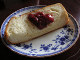 ごくごく普通の食パンがおいしそうに焼けました。手作りジャムはイチゴがゴロゴロと入っていて、かなり贅沢。たっぷりパンにのせていただきます。う~ん、幸せ。あまりにもおいしくて、パンをおかわり。また、朝から食べすぎちゃった。
