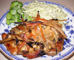 鶏肉の両面がしっかり焼けたら、きんぴらを上にのせて軽く焦げ目がつくまで焼きます。ちょっと、油断したら焦げてしまった・・・。