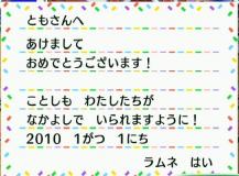 あけましておめでとうございます☆彡住人たちから年賀状がとどきました。「ラムネ はい」って、「ラムネ 拝」のことなんですね。いっしゅん考えちゃいました。「はは」からはお年玉がもらえましたね。ラムネのひとことで、ちょっとデザインを...ラムネから「おせち」のおすそわけ。左下に「寿」とかかれたカマボコが入ってます。その上は栗きんとん、右上がエビ、右下が伊達巻です。「とも」の体でイーゼルをかくしてみましたw型紙はコチラtemplate-まりもん img-ふわふわ。り