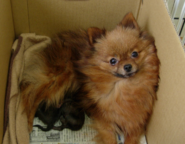 4月2日の夜、みかんが無事に2匹の子犬を出産しました!オレンジ系の女の子2匹です♪みかん、小さな体で本当に良く頑張りました。本当に良かった~!Uo・ェ・oU/゜・:*【祝】*:・゜\Uo・ェ・oUすぐに授乳をさせてしまったので、産まれたての正確な体重はわからないけれど、授乳後の体重は、どちらも115~120gぐらいでした。子犬の写真は、また後ほど・・・。(^^ゞお父さんは、北斗です。元気に育ってね!
