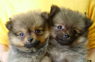 みかんの子犬ちゃん、すくすく成長しています♪ みかんが小さいので、子犬たちがものすごく大きく見えます。(^-^; 2匹のうち、毛色がオレンジっぽい子をオレンジちゃん、黒っぽい子を黒ちゃんと、とりあえず呼んでいます。(^^ゞ上の写真は、オレンジちゃん。ますますみかんそっくりになってきました。 そして、黒ちゃん。黒ちゃんは、正面から見ると、ウルフセーブルっぽい毛色になってきました。 でも背中から見ると、かなり黒っぽいです。とっても元気にみかんのお乳を引っ張りながら飲んでいます。 あまりにすごい勢いで、みかん、大丈夫?って思ってしまうほど。 数日前から、お皿からミルクをなめさせて、離乳食の練習を させているんだけど、まだ興味はないみたいです・・・。 毛もだいぶ伸びてきて、ポメらしくなってきました。 産箱からも脱走するようになったので、そろそろ産箱を撤収して 模様替えしようかな・・・。 今日の体重 黒ちゃん:329g オレンジちゃん:303g