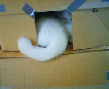 寒いですねぇ!季節外れの雪・雪・雪・・・。昭和44年の記録に並んだそうですよ。こちら長野はやっと来た桜の時期なのに、この寒さじゃお花見前に散っちゃうわ。当然、ストーブ焚いてこたつ入れて。耐えられません。それでも背中が寒い。どりあはストーブの前(今日は先に半纏を取り上げ、使わなくなった子供達の保育園用昼寝布団を置いときました)。白猫達はこたつの・・・あれ、いない。ちろると千代助は?見回したら、廊下の段ボール箱の中でした。寒くないのかな。ふたつで狭い中、無理矢理くっついてればいいのか。しっぽ出てるしw今日は・・・というか今、娘は小学校の合唱団練習へ。もうそろそろ終わる時間なので、帰ってきたら家族揃って映画を見に行きます。「アリスインワンダーランド」。初日だけど席は大丈夫かな?子供達とは時々行ってるけど、ダンナも参加は「パコ」以来かな。ジョニデ目当てだったはずなのに、公式サイト見てたらチェシャ猫が可愛くて、可愛くて♪猫好きの血が騒ぐぜ~w (←おバカ★)ついでにポケモンの前売りもゲットしてこよう。明日は子供会の資源回収で朝からバタバタするから、できれば買い物も今日のうちに済ませたいな。・・・って訳で帰りは遅くなるかもしれないので、「アリス」の感想はまた後日になると思われます(^^;