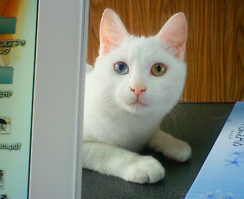 が、今日は珍しく自分からノートPCの裏にやってきました。