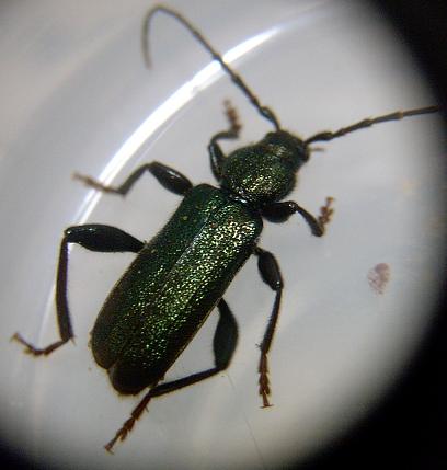 長野のカラフトホソコバネカミキリ(通称サハリン)やスミイロハナカミキリで有名な採集地に行って来た。金曜夜12時出発で現地到着午前4時過ぎ。夜明けを待って、まずはネキを探す。針葉樹の生木を掬っていくが、アワフキムシだのガガンボだのろくなものが入らない。6時くらいまでうろうろするが全然カミキリがいないので標高を上げてスミイロポイントで探してみる。昨日から居残っていたものか朝早くから飛んできたのか、普通種のハナカミキリとピドニアがそこそこ採れた。