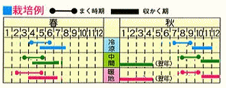 栽培適期の幅が広く、夏まき秋冬どりのほかに、