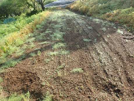 春ジャガイモの畝間に耕運機をかけてもらったのは~ 4月初旬頃