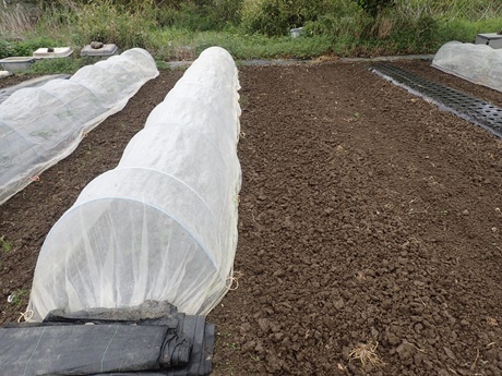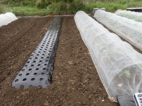 (第2弾祝雷(シュクライ)苗お片付け地 × 第3弾ズッキーニ苗植え付け地)