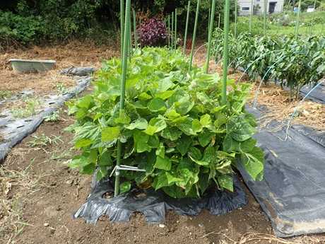 発芽が揃い短い支柱立てをしたのは~ 5月下旬頃