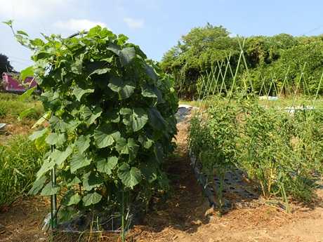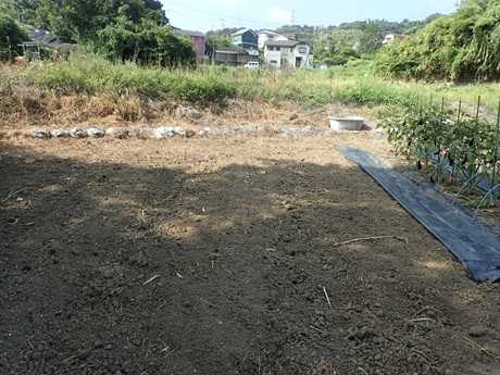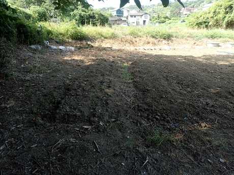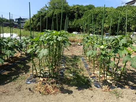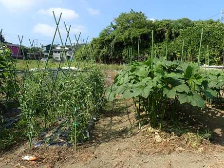(トマトわき芽苗植え付け地 × 第2弾オクラ種まき地 )