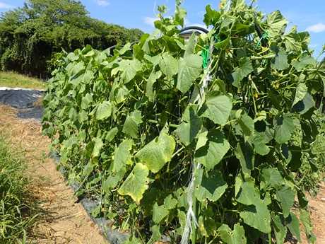 第2弾キュウリの支柱立て&1番果の収穫がスタートしたのは~ 7月初旬頃