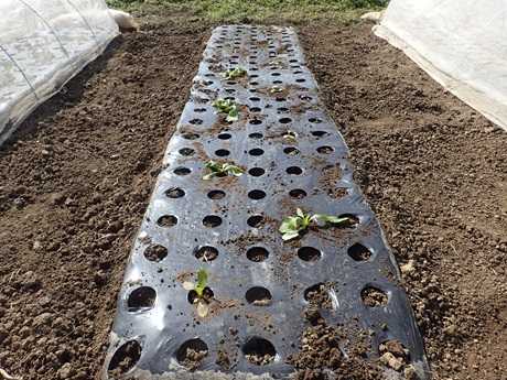 本葉4~5枚の苗を株間50センチを目安として定植。