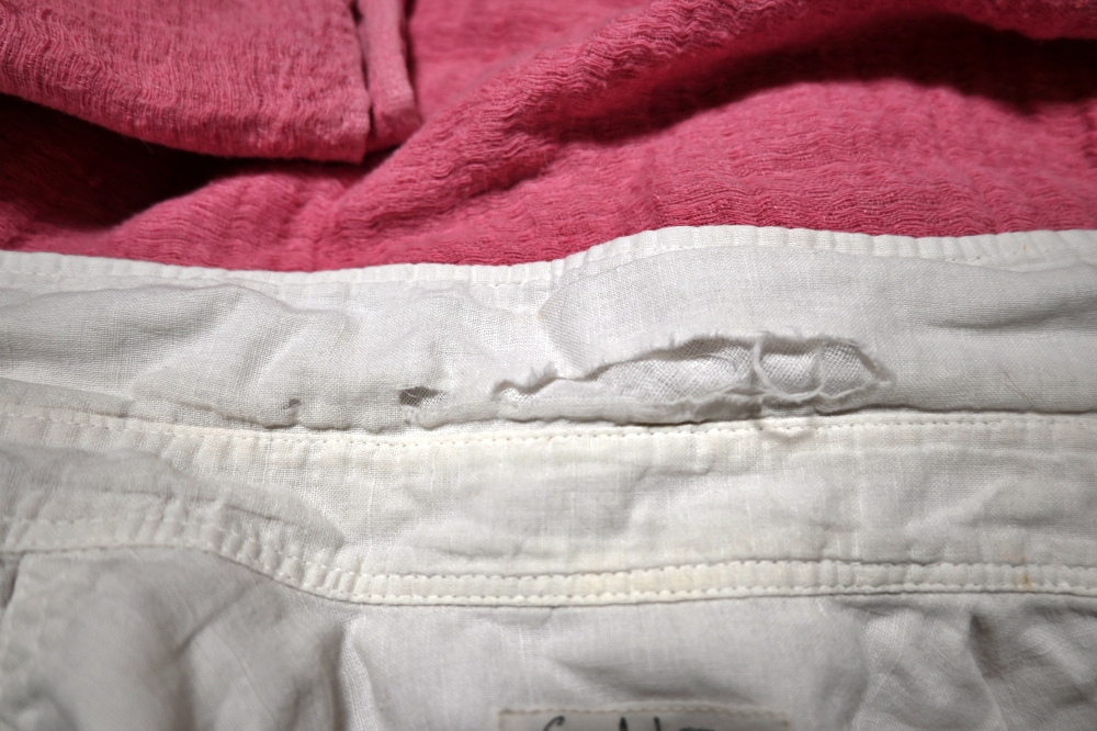 この状態で着ていたわけじゃないんだけど放置して洗濯して気が付いたら裂けてたって感じかな夏ものガーゼ生地なので柔らかいっていうのもあるかもね裁縫ってめっちゃ苦手なのにサクサク縫えるようになってるのが進歩かなとおもうこの服も長い間着たのでもうワンシーズン着れるといいなって思っておこう襟だけダメになるパターン=夏襟と袖口=冬服大事に着よう最近面倒になって服(ブラウスもスカートも)買ってないんよねそろそろ買い替えしようってことやね好みの服が見つからないから無理かもしれないそうだ作ればいいえ?服作るの???そのうち考えます5月時点でまだ何にも考えてないよ(*´∇`)ノシ