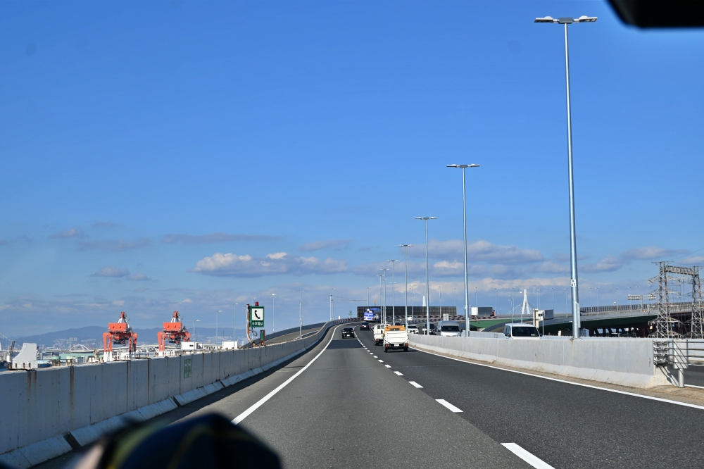 もうすぐ港大橋がみえます「上路が4号湾岸線(泉佐野方面)および16号大阪港線(大阪方面)、下路が4号湾岸線(泉佐野方面)および5号湾岸線(神戸方面)となっている」とのことなのでいつの間にか4号湾岸線から16号大阪港線に乗り換えているんですね今は泉佐野方面から大阪方面に向かっているから上を走ってて帰りここを通る場合大阪市内から泉佐野方面になるから下段を走っているようですってことは神戸に行くときは行きしなは下段なのね阪神高速のサイトから引用まっすぐ走っているのが4.5号湾岸線で横向きに走ってるのが16号なのねこれが実際は港大橋のあたりで重なっているということ高速走っていても万博会場は見えませんでしたよ上を走るのは空が見えて気持ちいいですね神戸に行くときは下段になるってことは神戸方面にはいかないから通ることはまぁ年に1回もないかもねこの風景が好きなんで毎回通るたびに忘れなかったら 写真撮影しています好きな風景があるのはいいよね(*´∇`)ノシ