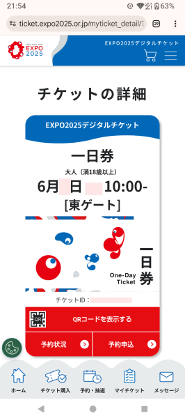 2枚目は 来場日を確定して 入場QRが出る状態になった