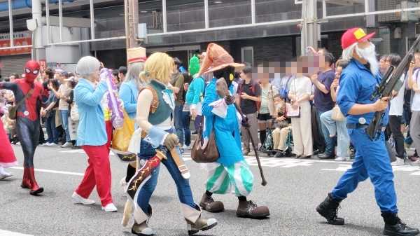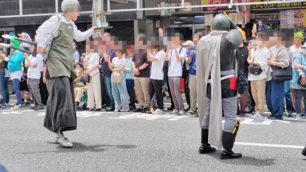 日本橋のメイド喫茶?の人たちが練り歩いていましたが