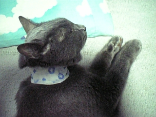 チョビは左心室の厚みがネコの標準が大体6ミリなのに対して10ミリ位に肥大し、その結果血が流れにくくなって呼吸が荒くなっているようです