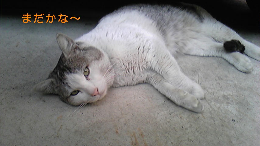 そしてごはん入れてる間はにゃーにゃーゆうてごろんごろんして待ってます